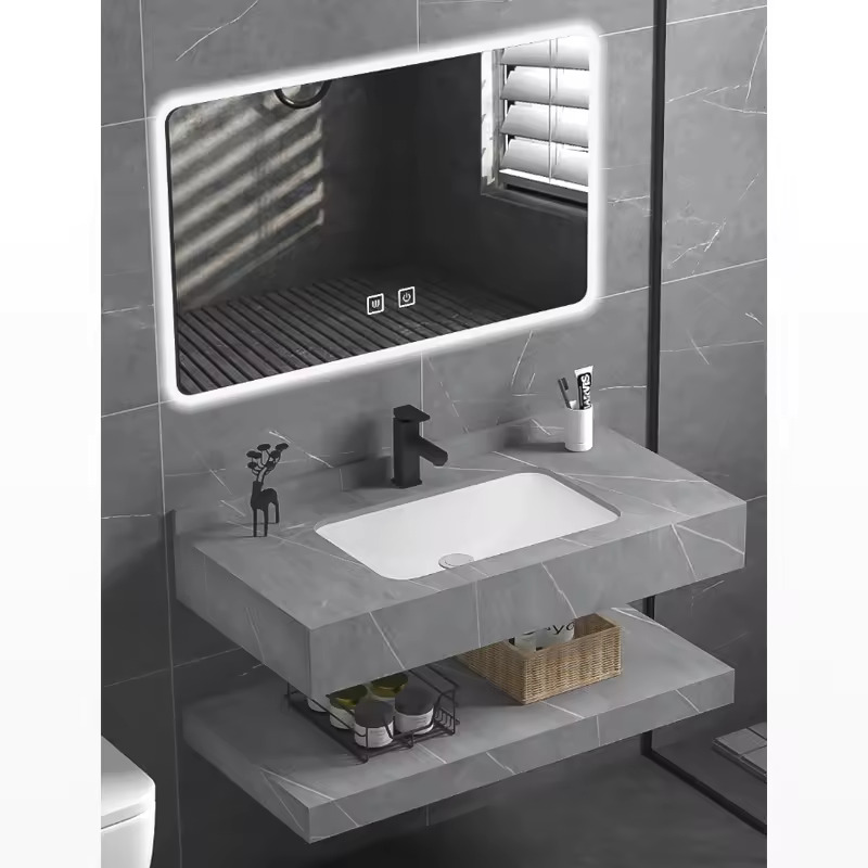 Das Doppelschicht-Design bietet eine einzigartige visuelle Anziehungskraft und verleiht der Leuchte Tiefe, was es zu einer herausragenden Funktion in jedem Badezimmer macht. Die obere Schicht dient typischerweise als Regal oder Stauraum und bietet einen bequemen Ort, um wichtige Pflegeprodukte und Zubehör zu erhalten. Die untere Schicht ist das Waschbecken selbst mit einer rechteckigen Form, die sowohl geräumig als auch stilvoll ist.